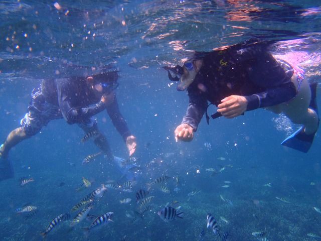 提供のエサをあげると熱帯魚がいっぱい寄ってきて堪能します。(計3ケ所でシュノーケリング)途中シーベースでシーウォークをやってまいた。(余談、別のベルトラ予約のシーウォークより、ここがベストと思いました)