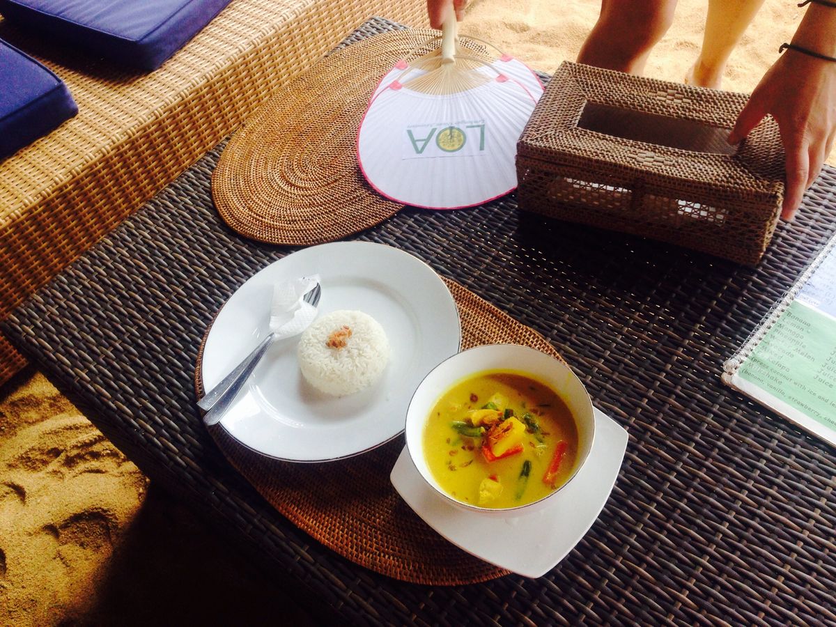 13:00頃にお昼を食べました。食事は3種類から選べ、私たちはカレーとバナナの皮でお魚を包んで焼いたものを注文しました!その他にアラカルトとして春巻きもプラスで注文でき、大食いの私たちにとっては大満足の昼食でした!!