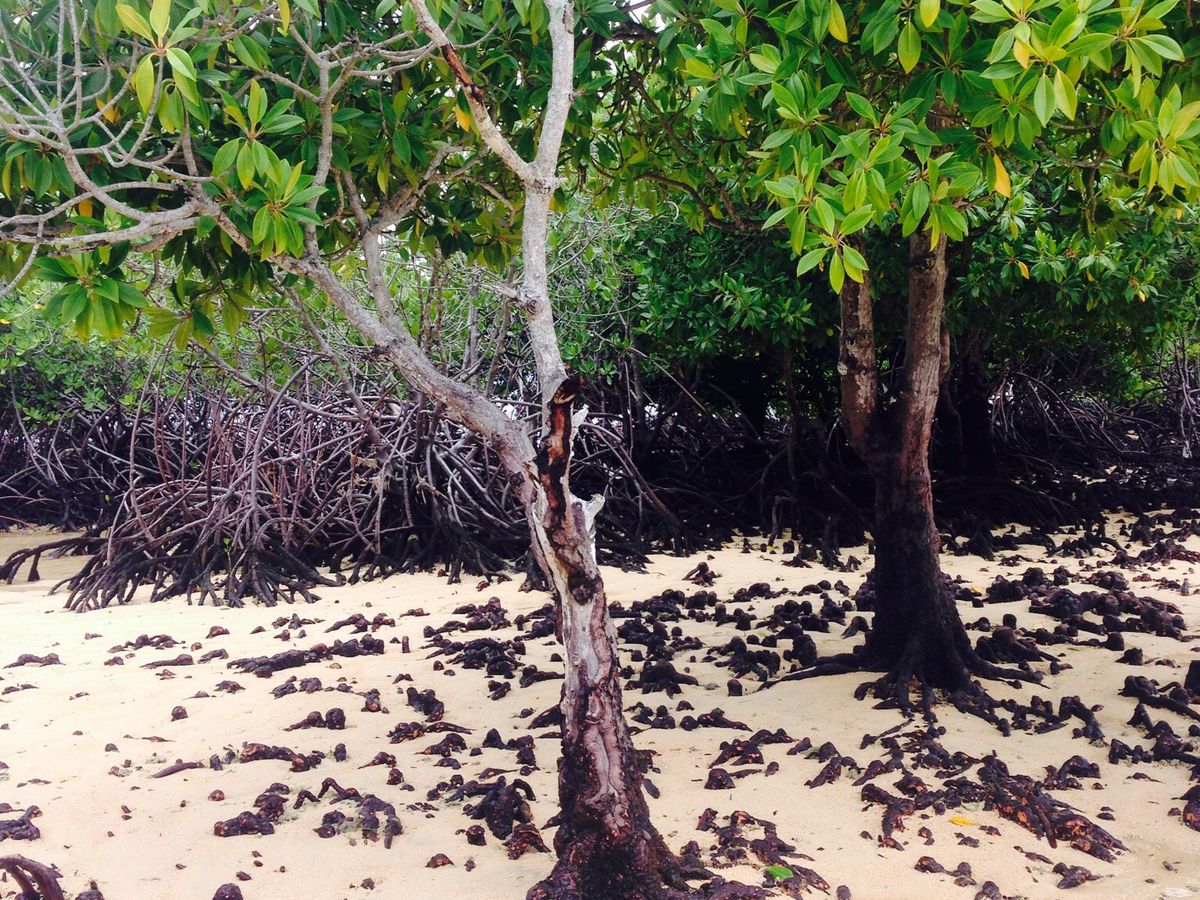 途中マングローブの根っこに