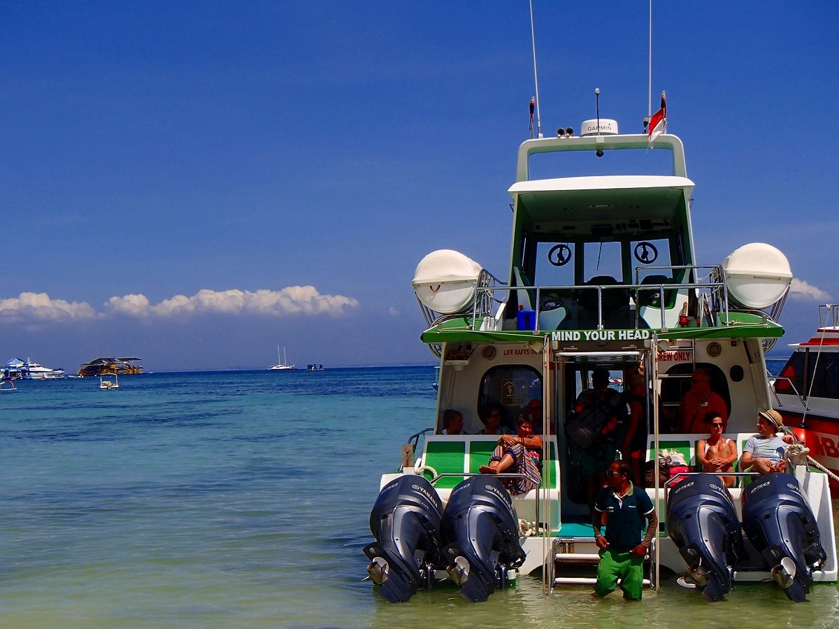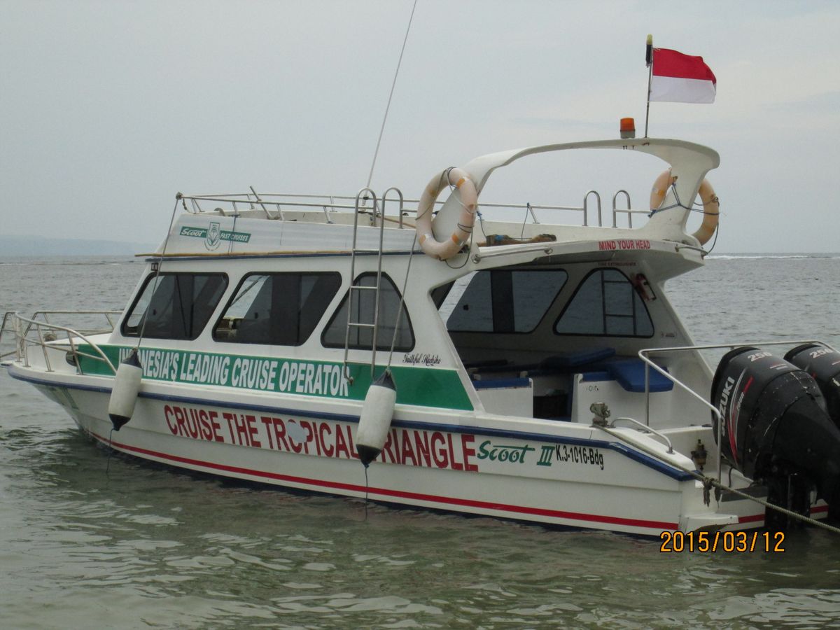 まずはホテルから港まで車で移動。港から高速船でレンボンガン島に渡ります。波はわりと静かで快適。
