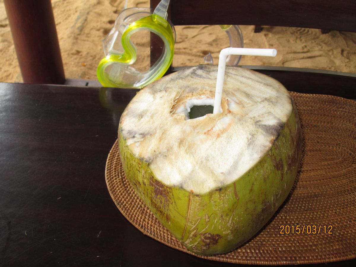 ヤシの実ジュースは飲んだ後で奥様が実を割ってくれて