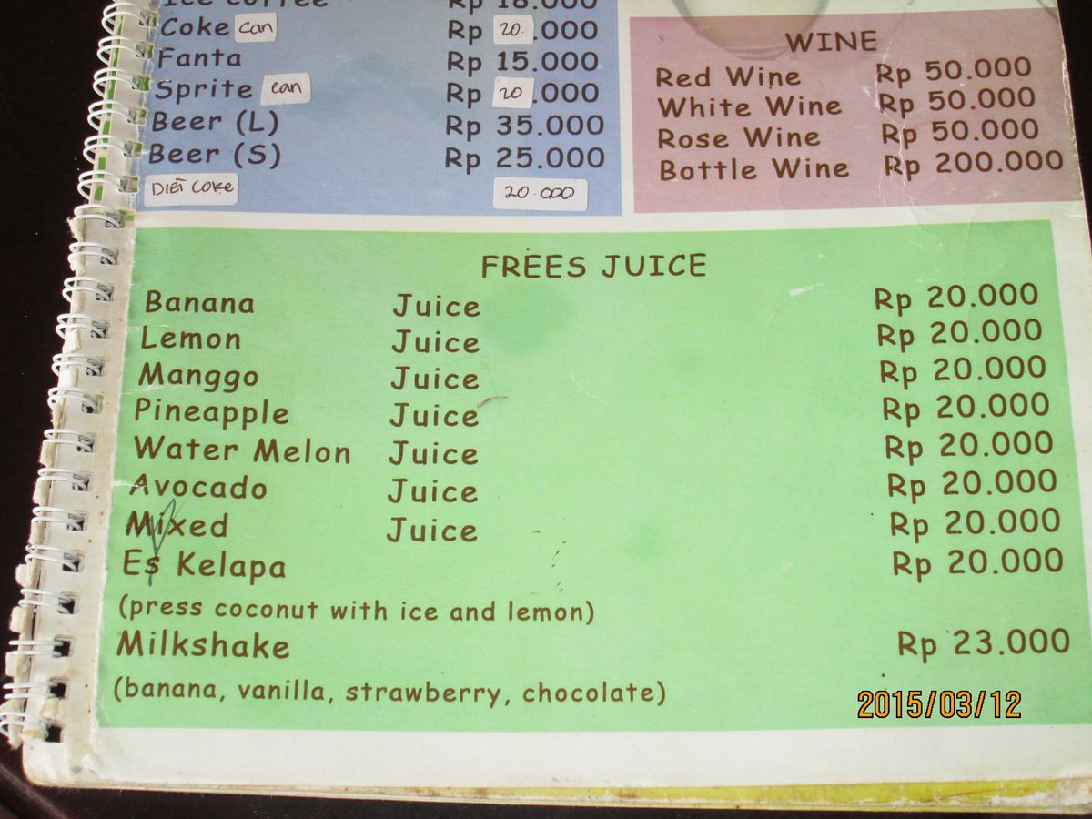 ツアーのあともインドネシアの料理が食べたいが言葉も分からない、しかもベジタリアンで不安だった私なんですが、日本語の通じる・メニューがあるレストランを教えてもらいました。