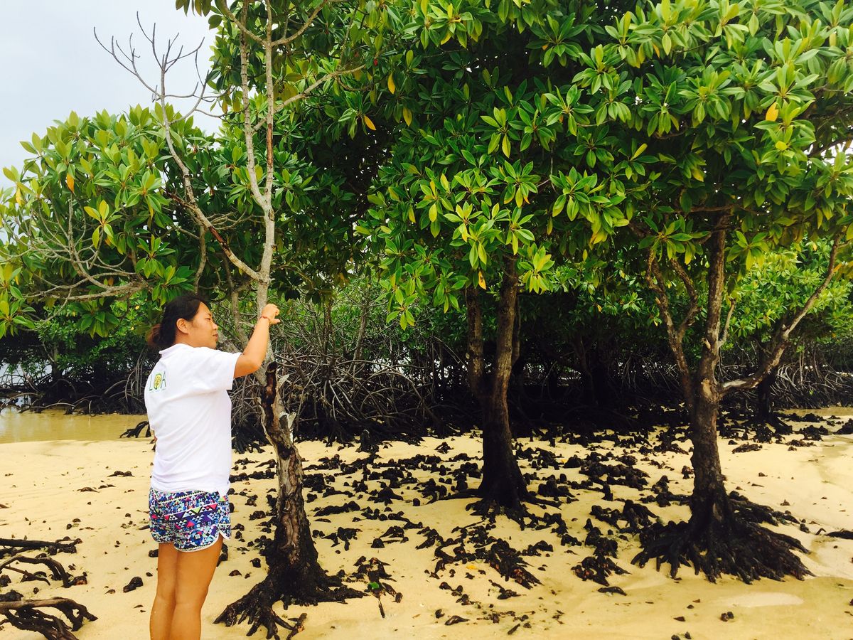 1時間ほどランチ休憩しその後マングローブの説明の為歩いて手漕ぎボート乗り場まで行き、