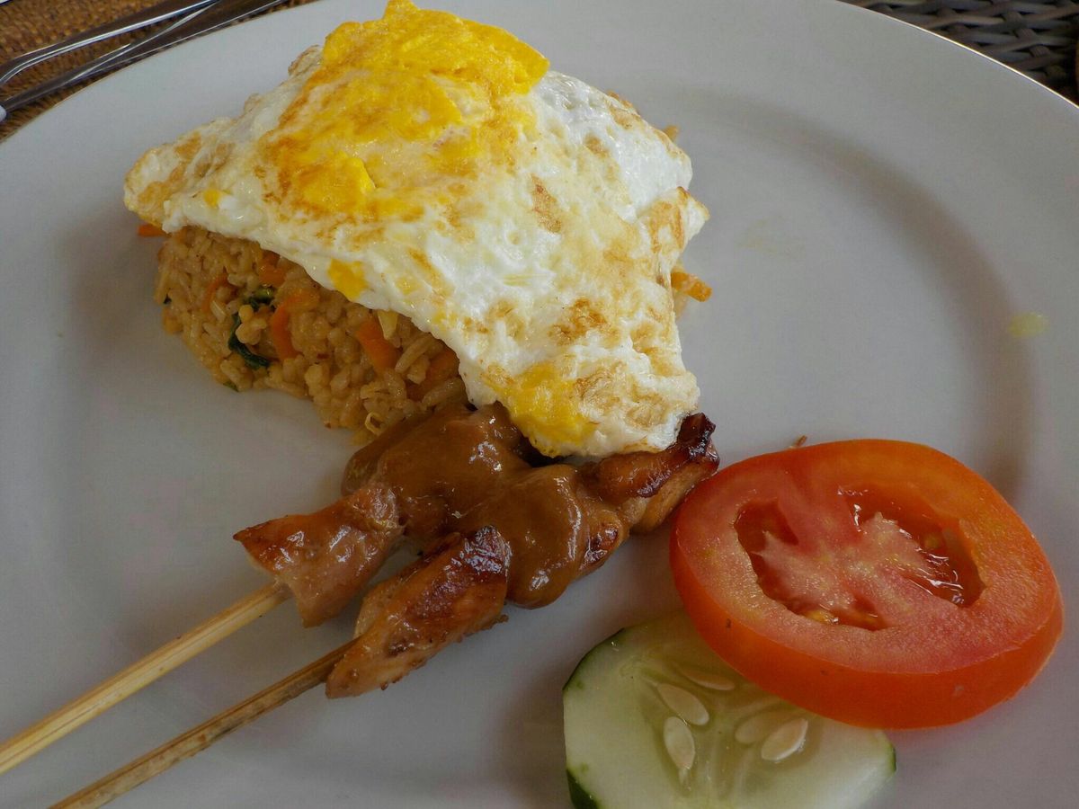 小屋では、停電の為シャワーを使うことができませんでした。バリでは停電はよくあることだそうです。到着するとウェルカムドリンクがあり、ランチは3種類の中から選ぶことができました!ナシゴレンおいしかったです。