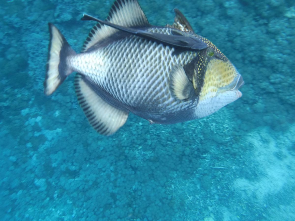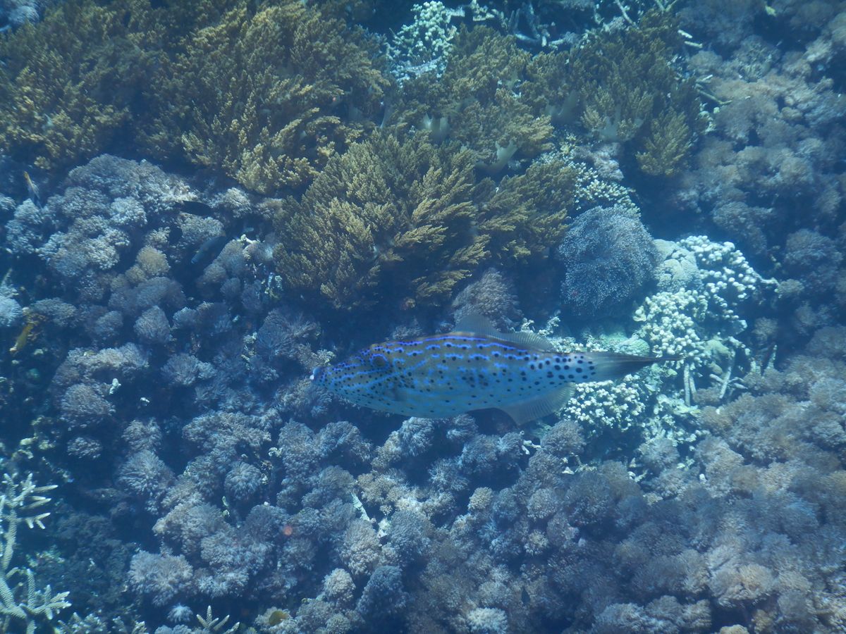 海の中が荒れているようで、マンタポイントでシュノーケルはできませんでした。2週間前にはマンタやマンボウも出没したそうですが、私たちは亀3匹と沢山の熱帯魚と縄張り争いに来た敵と勘違いしている魚(多分ブダイ)と遭遇しました。シュノーケルしていて近寄ってくる魚に会うのは初めてです。