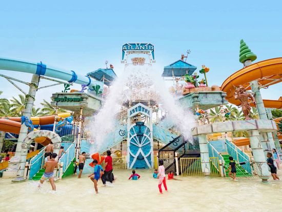 ジャカルタ北部の観光地「アンチョール・ドリームランド」内に位置する地中海文明をテーマにしたウォーターパーク。スリル満点のウォータースライダー、子供専用の浅いプール、流れるプールなど多彩なアトラクションが揃っており、家族連れで1日中楽しめる施設です。リゾート感あふれる環境で、レストランや休憩スペースも充実しています。