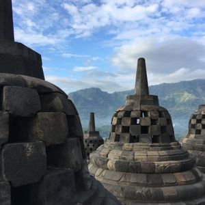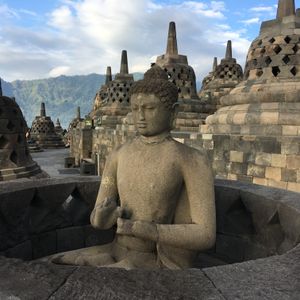 仕事でジャカルタに行き、一日だけ空いた日があったので、このツアーを申し込みました。ジョグジャカルタの空港で迎えてくれたガイドのリサさんは日本語も上手、細かく気を遣ってくれる人で、たのしい旅を過ごせました。ボロブドゥールは規模が大きく、もっと時間があったらレリーフの細部までみてまわりたかったなという思いがあるのですが、日帰りツアーでは仕方ありません。メールでは気温が40度になることもあるのでご注意下さいとありましたが、雲がけっこうありしのぎやすい日でたすかりました。ムラピ火山が雲で見えなかったのが残念でしたが。帰りにリサさんはメンドゥッツ寺院もまわってくれましたが、ここにある石仏も素晴らしいものでした。