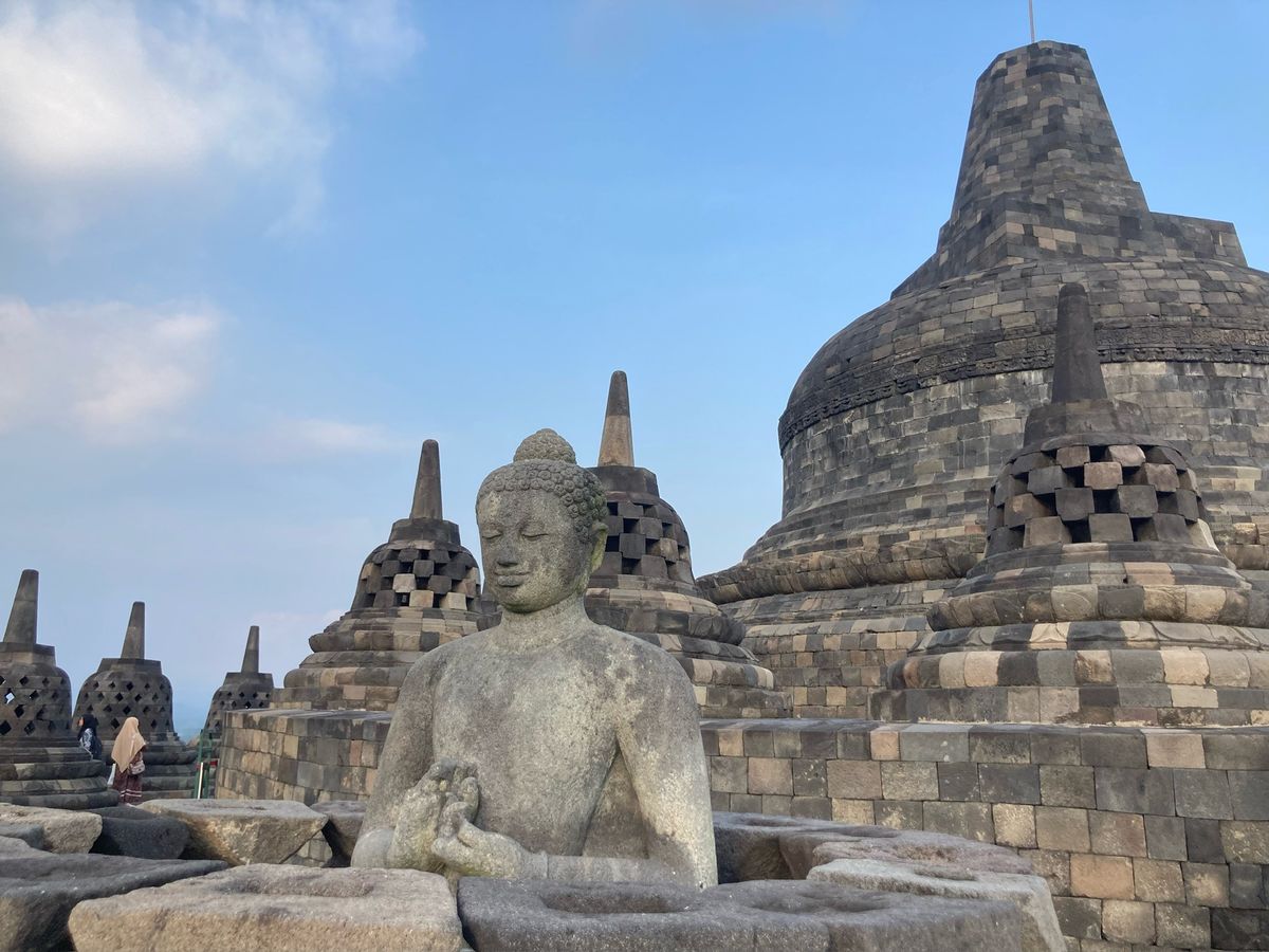 金曜日の朝6:00にジョグジャカルタ市街地のホテルからボロブドゥール遺跡に向かいました。女性の日本語ガイドさんと男性ドライバーさんでした。行きの車中でボロブドゥール側と交渉して頂いて、少しお高めでしたが敷地内のホテルから一番乗りで遺跡を見ることができました。少し早く到着しそうだったので、周辺の見どころの寺院にも案内してもらいました。ボロブドゥール寺院では専属の女性の日本語ガイドさんによく案内してもらい、素晴らしい体験になりました。ボロブドゥールからプランバナンに移動する途中でバティックのお店に寄ることに。色んな価格帯の商品があるのでお土産困ってる方にはいいかもしれません。ルアックコーヒーのお店にも連れていかれましたが、とてもお洒落で雰囲気の良いお店で、試飲させて頂けました。残念ながらバリ島で既にコーヒーを買ってしまっている旨伝えても、感じよく対応してもらえて素敵なご主人でした。プランバナンも素晴らしかったです。その後連れていってもらったご飯やさんも、とっても美味しく雰囲気が良かったです。ほぼ10時間ぴったりだったので、10時間にしておいて良かったです。とても楽しく素晴らしい一日でした。