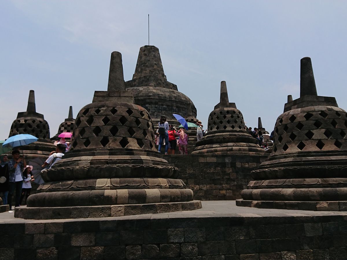 ボロブドゥール寺院では日によって頂上の方まで登れる日があるようで、その日は登ることができたためガイドさんが受付で予約してくれ登ることができました。