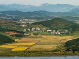 実際に北朝鮮現地を展望台から見ましたが、当日は天気が良く、金日成・金正日銅像、ハリウッドを真似たハングル文字、生の北朝鮮の数十人の人々を見ることができました。
