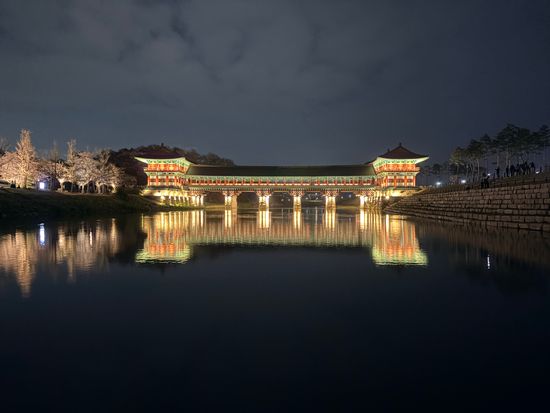 東宮と月池、月精橋の幻想的なライトアップも思い出深いものでした。そこでは、Sophieさんが、スマホにライトを取り付けて写真を撮って下さり、綺麗な写真ができました。後日、写真を送って下さり、ありがとうございました。