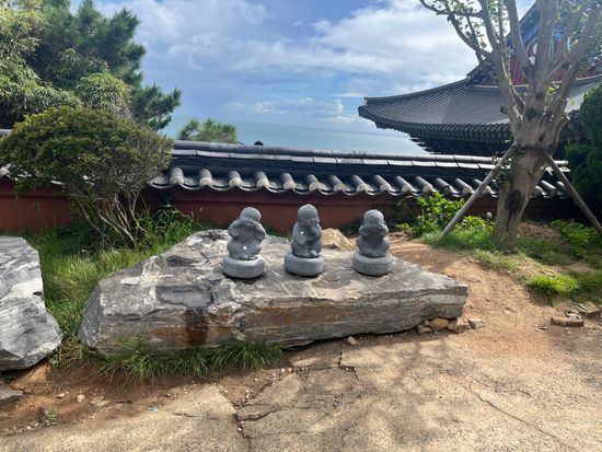 韓国内ではとても珍しく海辺にある寺として有名。東海岸の景色に寺が立っていて、海の景観が美しい絶景ポイントの1つでもあります。海を眺めて立つ海水観音大仏や108段の階段なども見所です。