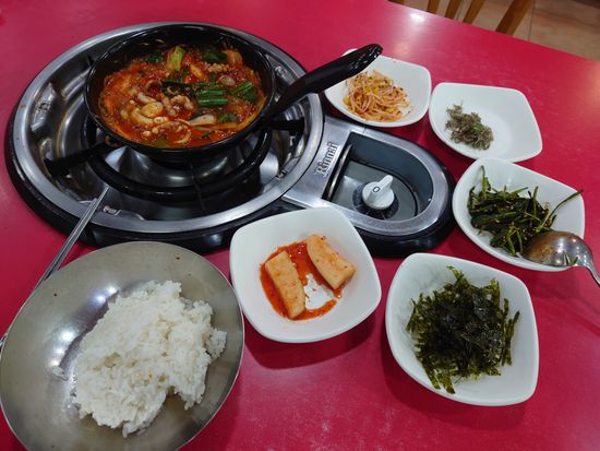 ①ケミチブ釜山本店:ナッチポックン(タコ炒め鍋とご飯)