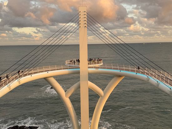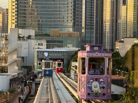 地上7~10mの高さにあるレールを走る海雲台ブルーラインパークのスカイカプセルに乗車。カプセル型のユニークな車両に乗り込み、釜山の海岸線の美しいパノラマビューと、沈む夕日をご堪能ください。