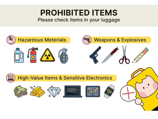 お荷物の中に以下の品目が含まれていないか、事前にご確認ください。