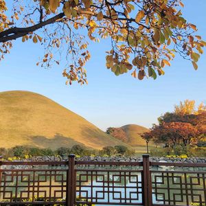 天候にも恵まれ、秋晴れのもと紅葉に彩られた慶州の風景を満喫することができました。古墳を訪れた時はちょうど、夕日がきれいな時間帯だったので沢山写真を撮りました。