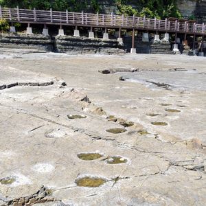 台風一過の晴天で、すばらしい恐竜の足跡化石を堪能できました。広い敷地の中、遊歩道の行った先まで車で迎えに来てもらえて、とても助かりました。