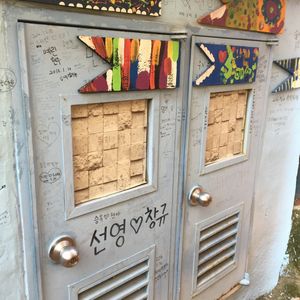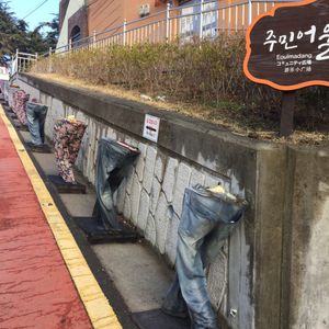 釜山は山に囲まれた港町なので、山の斜面に多くの家が建てられています。このような山の斜面にある路地集落の一つが、甘川洞文化村(カムチョンドンムナマウル)です。釜山のマチュピチュと呼ばれる観光スポットとなっています。遠くからカラフルな色で塗られた家屋が、山肌にぎっしりと立ち並ぶのが見えます。入り組んだ路地で形成されている集落です。路地のあちこちにアートオブジェや壁などに描かれたストリートアートが見られる芸術村です。坂道、階段、足元の不安定な場所も多々あるので、歩きやすい靴で行くことをお勧めします。