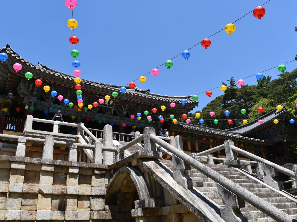 仏国寺ではちょうどお釈迦様の日のイベントをやっており、とても賑わっていました。また提灯が色とりどりに綺麗に飾られていました。韓定食は盛りだくさんでとても美味しく頂けました。残念だったのは、曜日のせいか、時間のせいか、慶州市場は活気がありませんでした。釜山で国際市場を観光していれば、美術館に行った方がいいと思います。