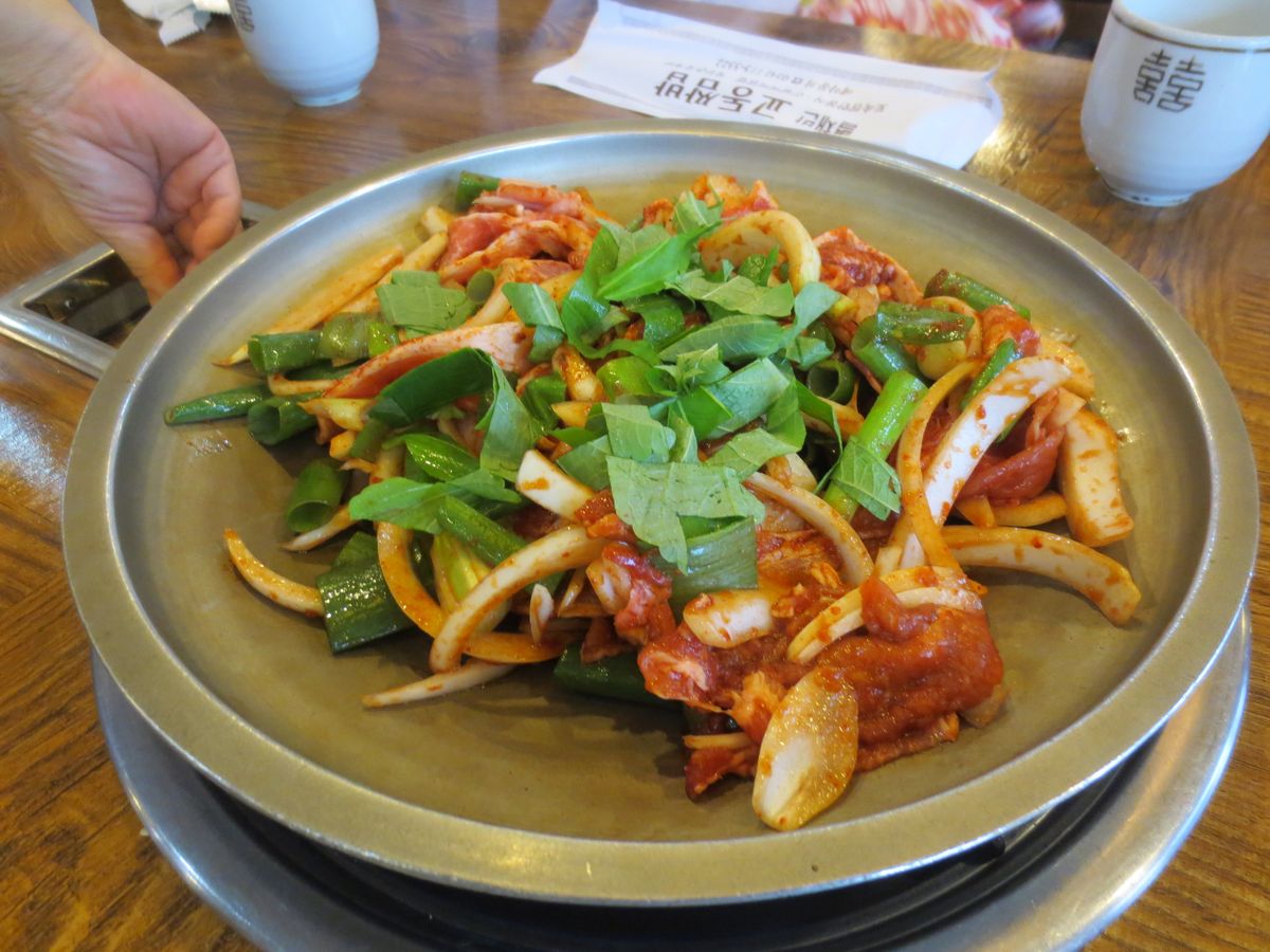 紹介してくれました。随分人気のお店のようでしたが、最初に従業員さんが持ってきたメニューで注文したら、値段の違うメニューを店長が持ってきて、昨日からこちらに変わったと英語で言いました。そんなはずは無いのでしょうが、日本人なのでそのような対応をされてしまいました。対して高くもないので、まあ良いか,と言うところですが,せっかく良かれと思ってガイドさんが紹介してくれたのに・・・ですね。 もちろんガイドさんのせいではありませんよ。それなりに美味しかったので,もう一度行って、今度はしっかり韓国語で相手になってみようかな、と思っています。