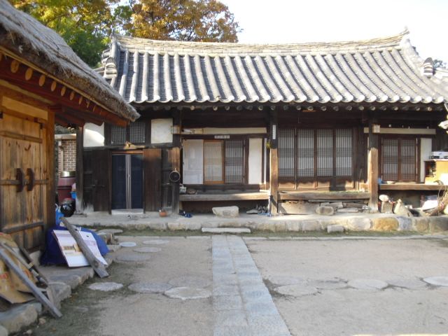 昼食はサンパッ韓定食をいただきましたが、閔さんが肉を焼いてくれ寒かったので温かいお茶を持って来てくれ、いたせりつくせりでゆっくりと食べることができました。3泊4日の旅の中で一番おいしかった食事はこのサンパッ韓定食でした。また食べたいです。食後は皇南パンに寄り今回一番行きたかった良洞民族村に到着です。野菜は自給自足で畑にはこれから漬ける白菜がたくさん作ってありました。味噌や醤油のかめも各家庭の庭先にあり、タイムスリップしたようです。感動です。日本の観光地はお土産やさんがかならずありますが、そういったものはないので時間をとられることもなく、閔さんのすばらしい説明で120%の満足した観光でした。運転手も安全運転で帰りには疲れて眠ってしまいました。安心して乗っていられます。また釜山に行く時は観光案内をお願いしたいと思います。