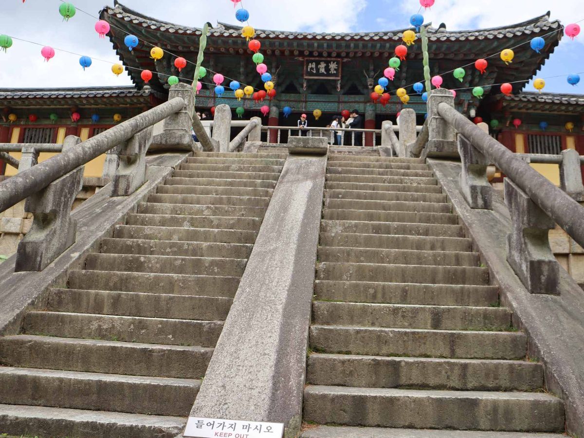 お寺の階段が幅も段差もちがっています。登り降りに不安な方は無理せず、またすぐ同じ場所に戻ってくるので待っていても大丈夫です。16時に出発し、釜山に戻るのは18時すぎなので夜の予定時間には注意です。