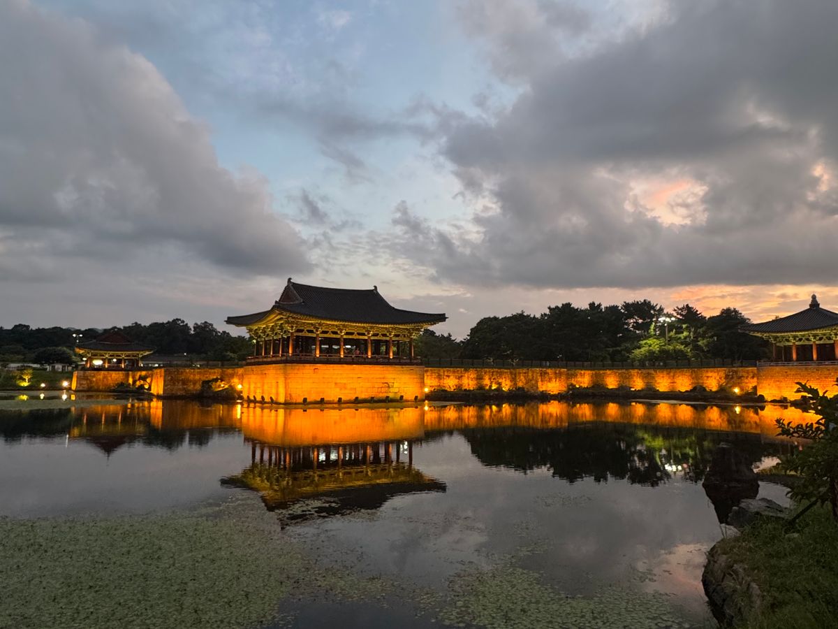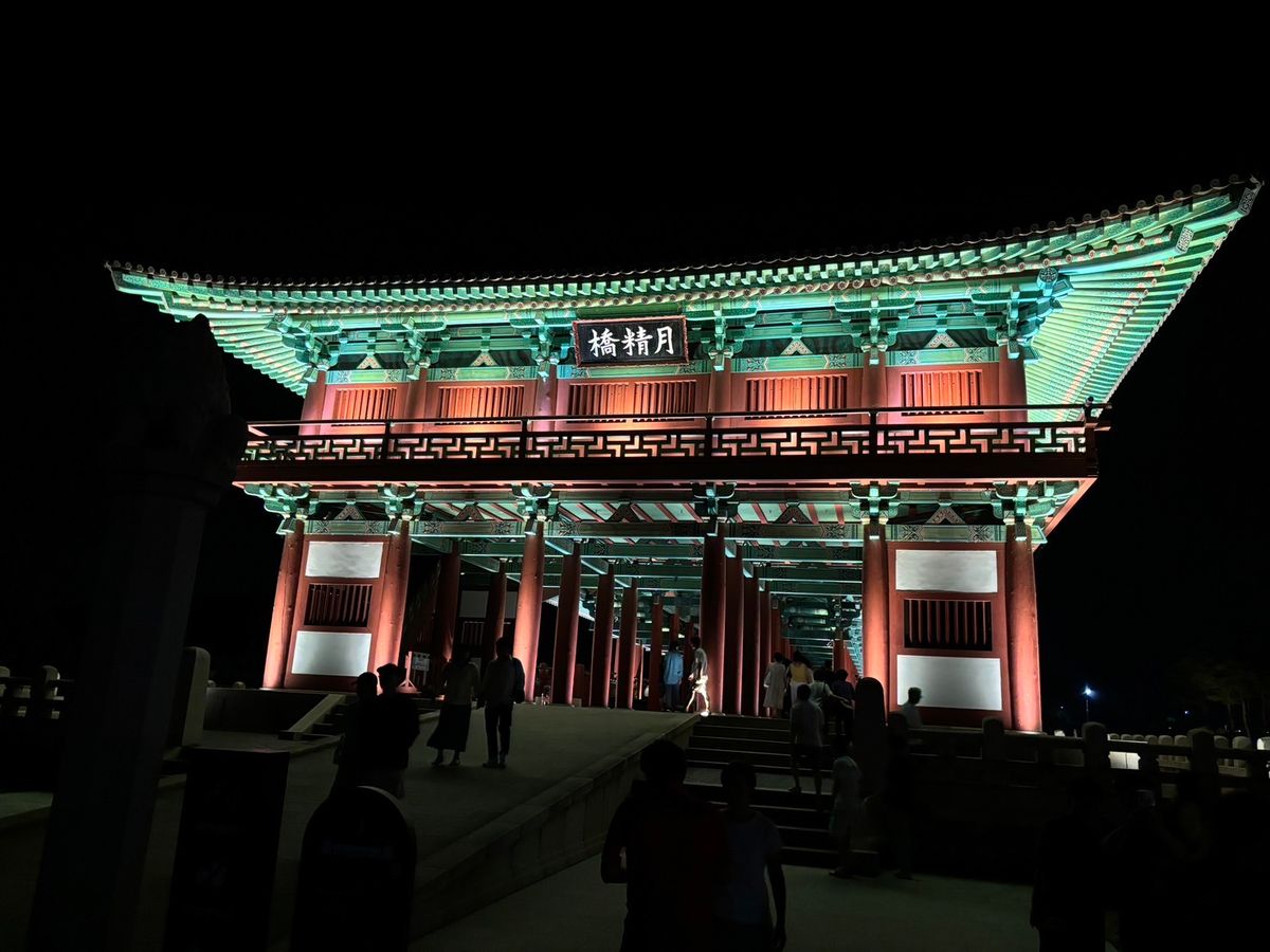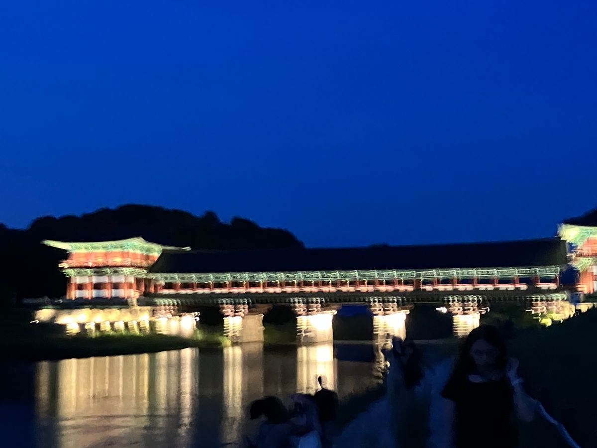 昼の観光で結構みんなぐったりしてしまい、夕方の月精橋と東宮は夏なので日暮が遅くライトアップの時間も遅かったため、もう写真のためだけに待つ、みたいな感じでした。