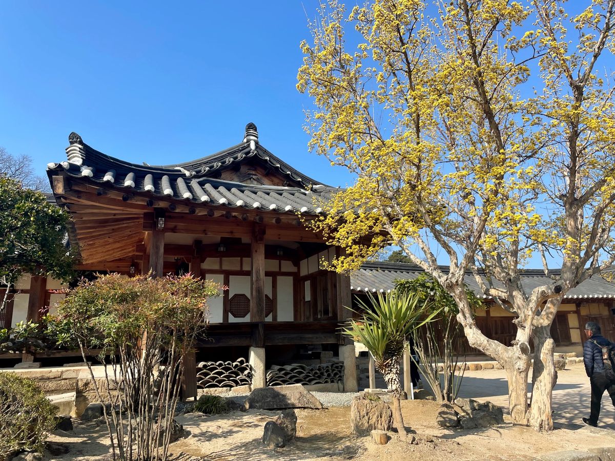 石窟庵は花崗岩でできた石仏が美しくて、いつまでも見ていたかったほどでした。仏国寺も美しい建築で、新羅時代の石を扱う技術の高さが良く分かり、ガイドさんの知識の深さ広さに感心しました。国立慶州博物館では1時間堪能し、天馬塚、校洞村、皇理団は見学時間は短かったですが楽しく回れました。桜の開花は釜山ほどではありませんでしたが、モクレンやレンギョウがあちこちで見られて癒され、参加者が少なかった事とガイドさんの気配りのおかげで快適なツアーになりました。