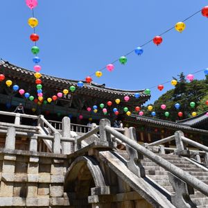 仏国寺ではちょうどお釈迦様の日のイベントをやっており、とても賑わっていました。また提灯が色とりどりに綺麗に飾られていました。韓定食は盛りだくさんでとても美味しく頂けました。残念だったのは、曜日のせいか、時間のせいか、慶州市場は活気がありませんでした。釜山で国際市場を観光していれば、美術館に行った方がいいと思います。