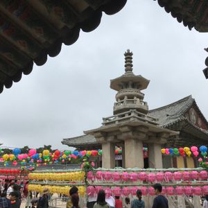 他の方と合わせて10人でした。慶州まで1時間半ありましたが添乗員さんが色々な話をされて勉強になりました。石窟庵では雨でしたが仏国時では天気も回復し、次の日がお釈迦様の誕生日の祭りだったそうでお寺の周りや中に沢山のちょうちんが飾られ、とても綺麗でした。お昼ご飯も美味しくて食べ過ぎてしまいました。博物館は月曜日は休みとなっていたのに何故か開いていてラッキーでした。帰りはホテルに送って下さり充実した1日を過ごせてとても楽しかったです。個人でこれだけ回ろうとすると移動するだけでも大変なのでお得だと思います。また利用したいと思います。ありがとうございました!