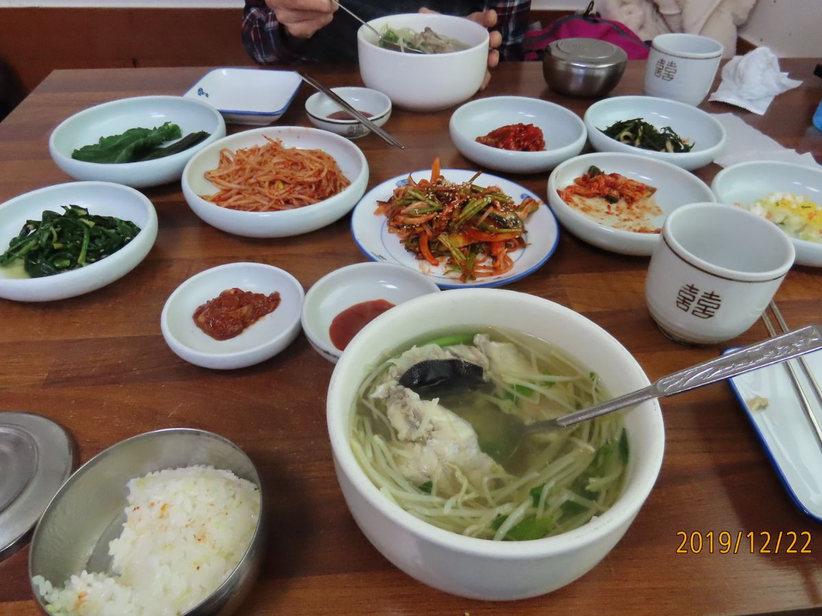 ミニバンでの観光となりました。同じ飛行機の家族旅行の方と午前中までご一緒しました。観光は十分時間あり、ゆっくり出来ました。どこもトイレは無料、清潔で安心です。昼食はフグ専門店ですが、日本のフグ料理を想像しない方がいいです。お値段相応です。釜山を舞台にした映画は見ていましたのでガイドさんといいお話が出来ました。ロケ地のお店も見れました。チャガルチでガイドさんとお別れし、クリスマス前の南浦の夜を楽しんできました。