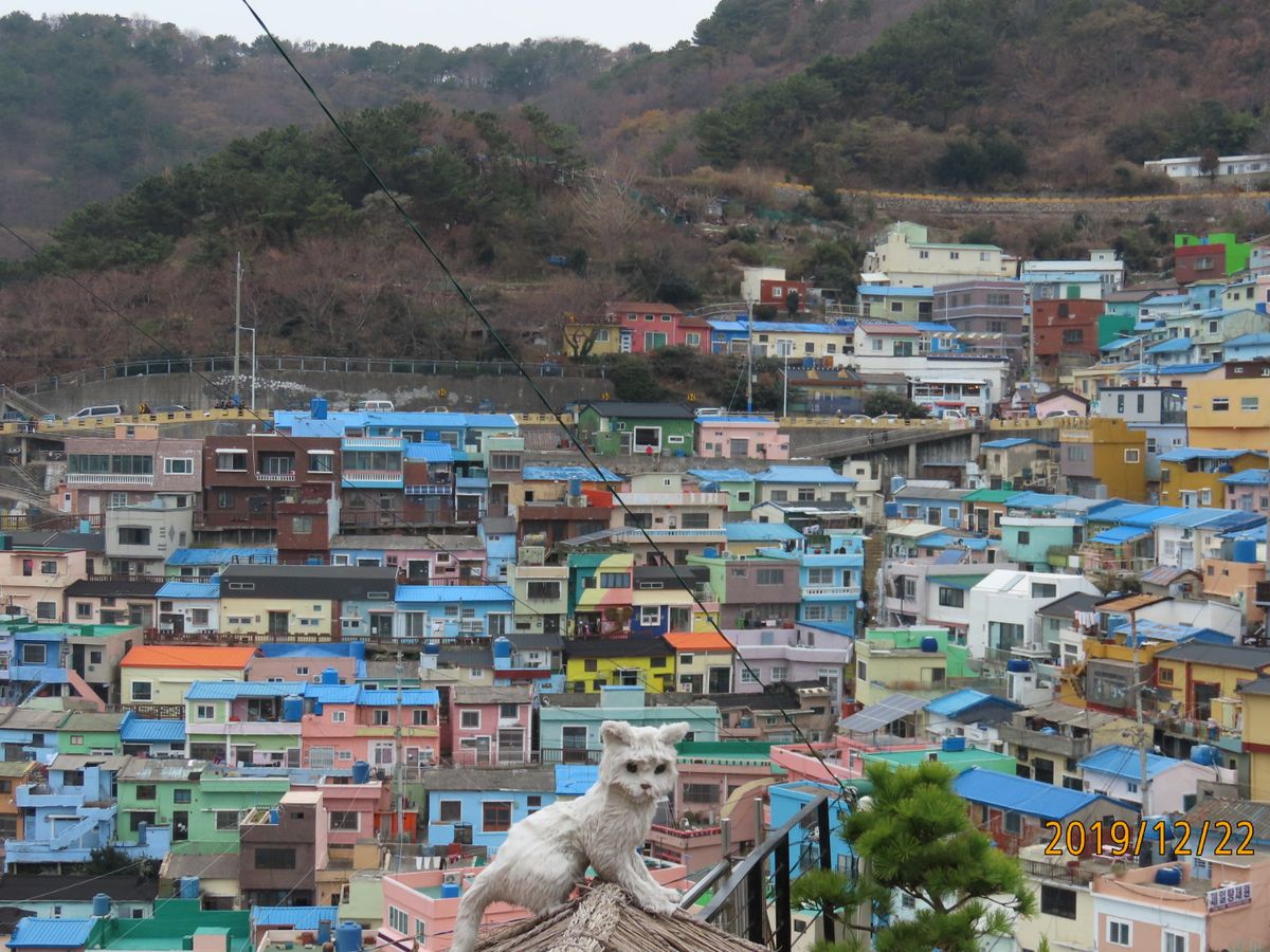 あまり期待していなかったが、甘川文化村のガイドさんが語る悲しい歴史にも耳を傾け、途切れのない路地と急斜面での生活に驚いた。松島海上ケーブルも迫力があり、渡ってからの恐竜や星の王子様も楽しかった。今日も二人だけなのにタクシーで案内して下さり恐縮した。ガイドさんの「もっと近づいて、肩を組んで」にテレながらシャッターを切ってもらった67、68歳の夫婦でした。