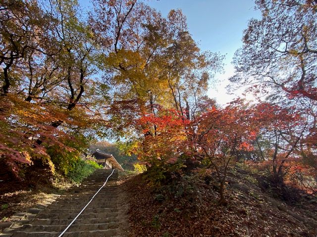 「借景」の理念で建てられた鳳亭寺や、自然との調和を保ちながら今に続く韓屋の集落、河回村などの各スポット自体もですが、さらに天気が良く、紅葉も映えて、一層の素晴らしさでした。