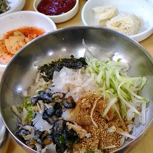 昼食(浦項ムルフェ)刺身をコチュジャンを氷水で薄めた物をかけて食べるといった食べ物でしたが、女房は美味しいといって食べていましたが、私はコチュジャンのみを混ぜて食しました。