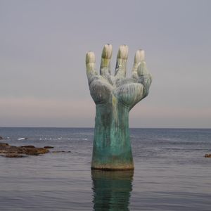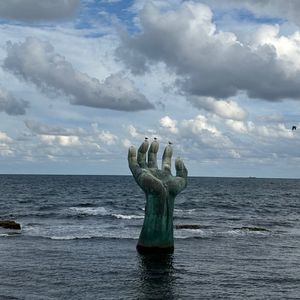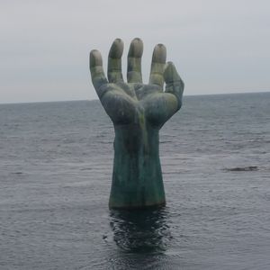 最後に朝鮮半島で日の出が一番早いところへ行きました、巨大な彫刻、海に右手、海岸に左手