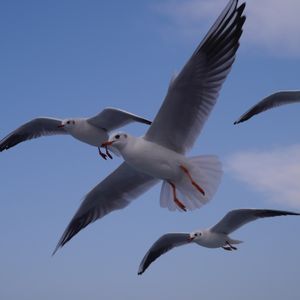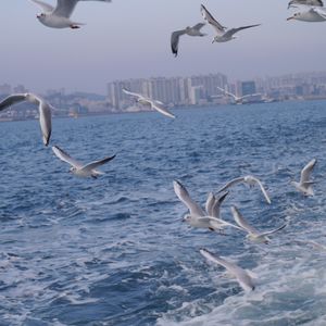 ここでは飛んでくるかもめにえさやりができます。えさのかっぱえびせんは乗船前に購入。