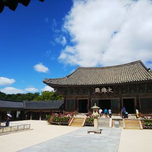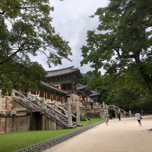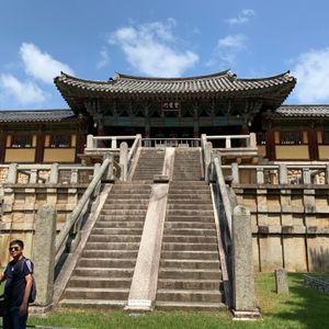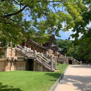当日は台風の影響で曇り空。私達家族のみの参加という事で、気楽な観光になりました。車窓から海雲台の街並みを眺めながら、慶州まで1時間。石窟庵を目の前にして、あまりの迫力に言葉が出ません。本当素晴らしい!本堂から釜山の景色が綺麗で、ガイドさんから海まで見えるのは珍しい。晴れていても見えない事が沢山あると聞きました。仏国寺、ガイドさんの説明を聞き、随所に昔の人達の技術や願いを感じました。紅葉が綺麗な季節にまた訪れたいです。天文台は石を積み上げた塔や天馬塚を見学。塚の内部にあった装飾は本当綺麗でした。昔の人の技術力は素晴らしいです。昼食は食べきれない程の量がの多さ、野菜に包んで美味しくいただきました。最後は良洞村の散策。タイムスリップしたような景色が広がります。家屋の趣きや樹齢600年の樹木も歴史を感じました。現在も居住されている方と少しお話しする事が出来ました。