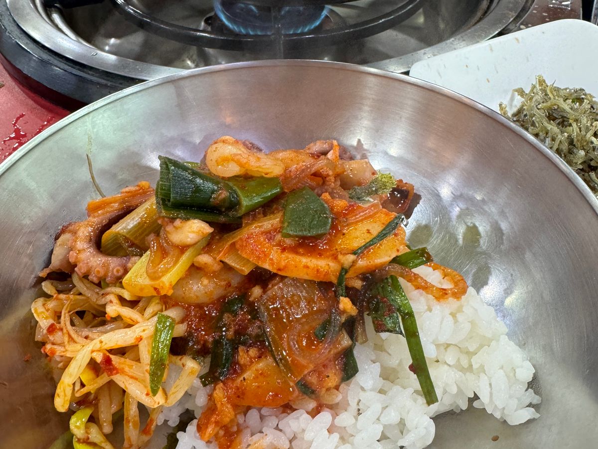 お昼のタコの炒め物もそんなに辛くありませんので辛い物が苦手な方も大丈夫だと思います。