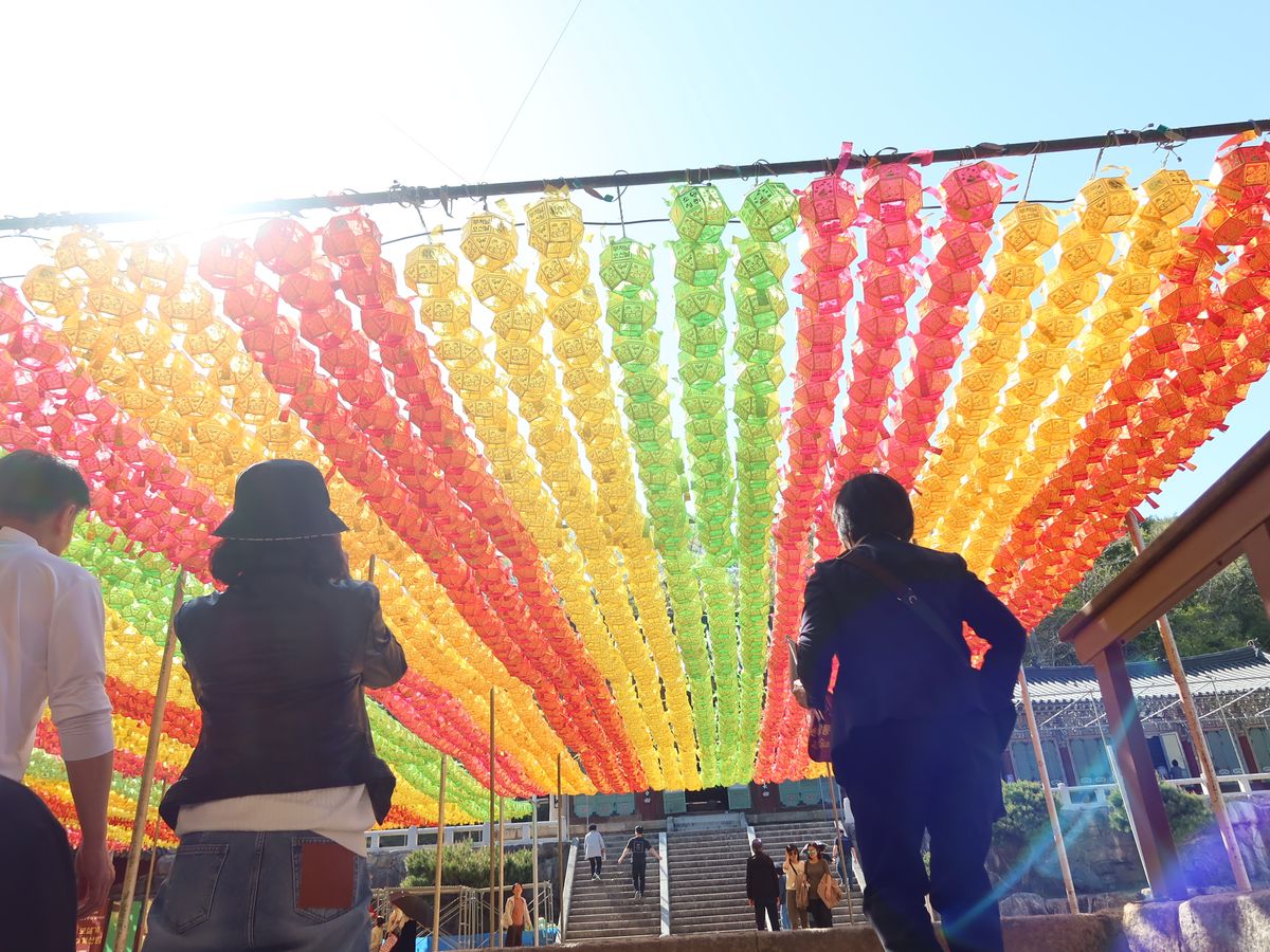 松島海上ケーブルカーからの海や建物の眺めは、とても素敵でした。甘川文化村は、家の様子を眺めるだけと思っていましたが、ツアーでは、実際に村の中をカラフルな家を眺めながら歩いて、カフェでコーヒーを飲んだり、BTSのジミンやジョングクの壁画のところで、写真を撮ったりと楽しく過ごせました。海雲台では、砂のアート作品があり、周りの高層マンションが見上げる程高く近代的で圧倒されました 。海東龍宮寺は、海に沿って 龍のようなお寺の造りになっていて、海側から眺めるお寺がとても絵になりました。自分の干支の石像のところで写真を撮りました。梵魚寺は、山の上のお寺で、カラフルなちょうちんのような物が綺麗に飾ってありました。ツアーのガイドさんの説明がとても詳しくて、韓国や釜山の勉強にもなりました。とても素敵なツアーでした!!