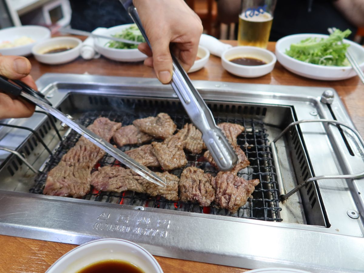 夕方、焼き肉を予約していましたが、思ったよりもツアーが遅くなったので、予約の時間に間に合わず、ガイドのキムさんにお店に遅れるという連絡を入れてもらいましたが、店側はさぞ怒っているようでした。キムさんもミセの対応に呆れていましたが、行ってみると無事に焼き肉をお腹いっぱい食べることが出来ました。炭火焼き肉だったので、お店は炭をおこして待っていたようです。なので時間通りに来ないと、炭火の火力が弱ってしまうのだと理解できました。ありがとうございました。