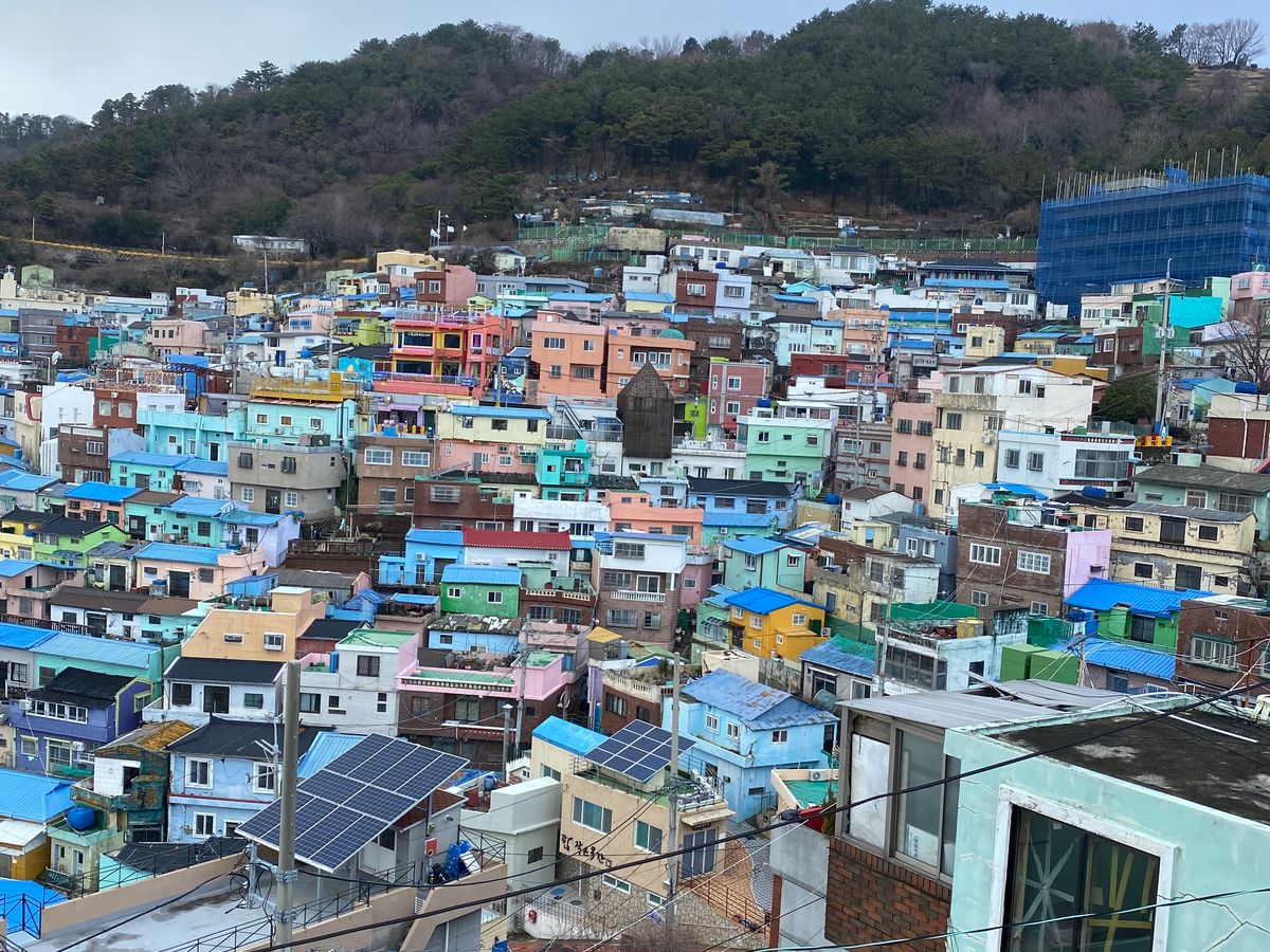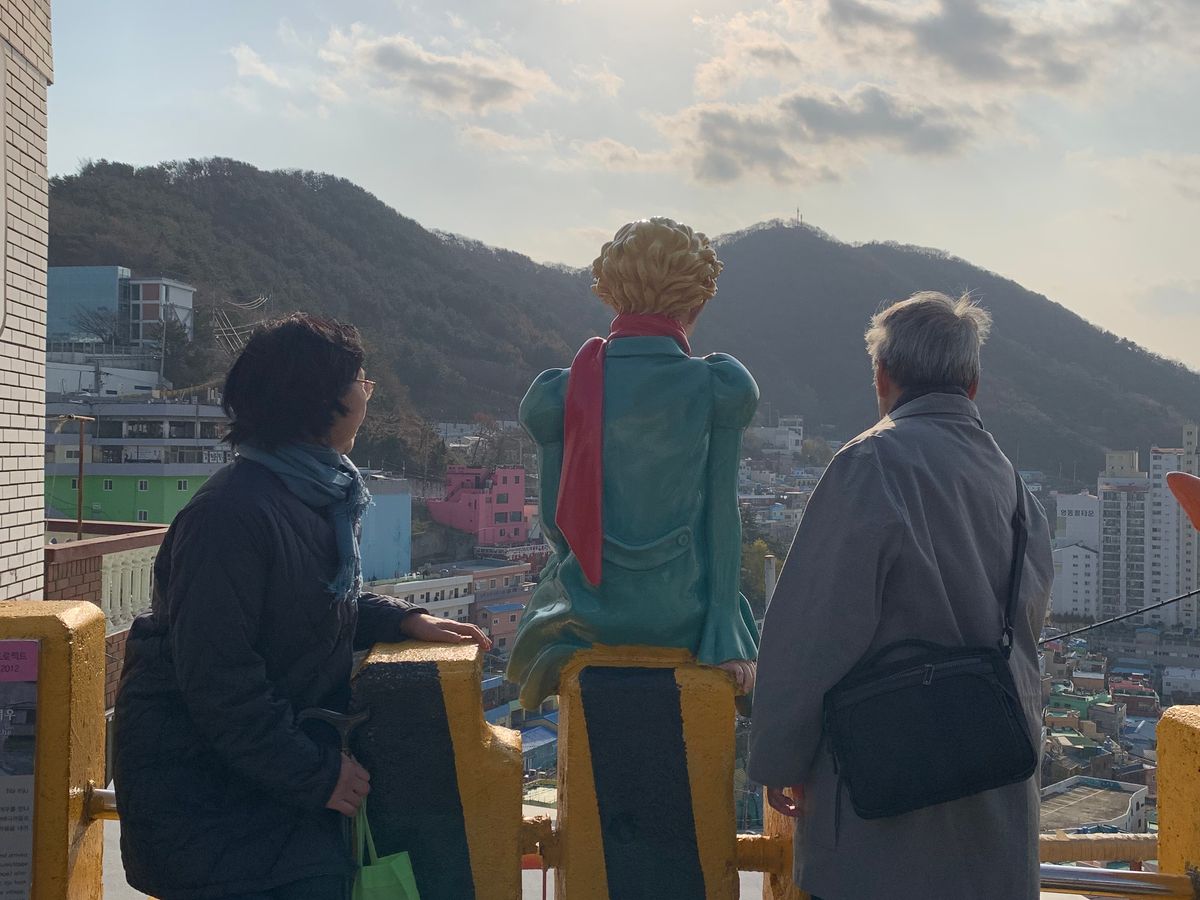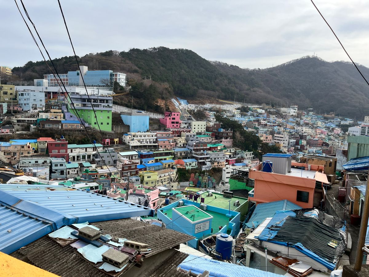 釜山は坂が多いと聞いていたので心配していたのですが、ガイドさんが足の悪い私にも配慮してくださり、すっかり釜山ファンになりました。甘川文化村など釜山は歴史と現在がごちゃまぜの街で魅力を感じます。気が付いたらものすごく歩いていたのですが、私のゆっくりペースに合わせてくれたのか、気持ちよく見ることができました。説明も釜山愛にあふれていて、おもしろく聞きました。