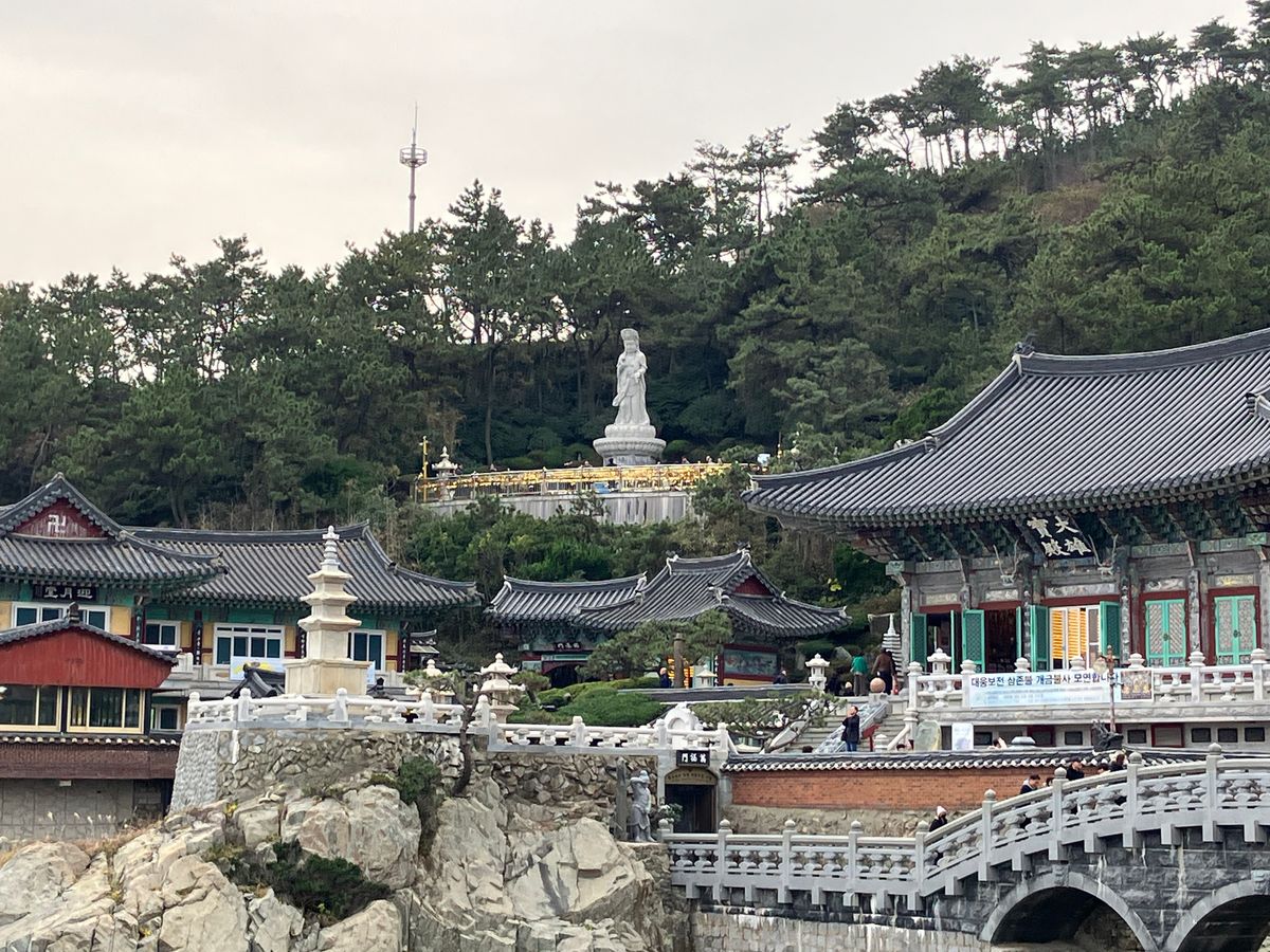 天候に恵まれ雲一つない青空の中、優しく丁寧に車の中でも詳しく説明してくださる女性ガイドさんと共にお客さん5人とで回りました。夫婦だけでこれだけの観光は出来ないししないであろう釜山のあちこちの場所へ回り歴史も丁寧に教えていただき本当に参加して良かったです!ただ午後からのお寺参りはすごい階段の登り降りで足が疲れました。是非スニーカーでご参加下さい。