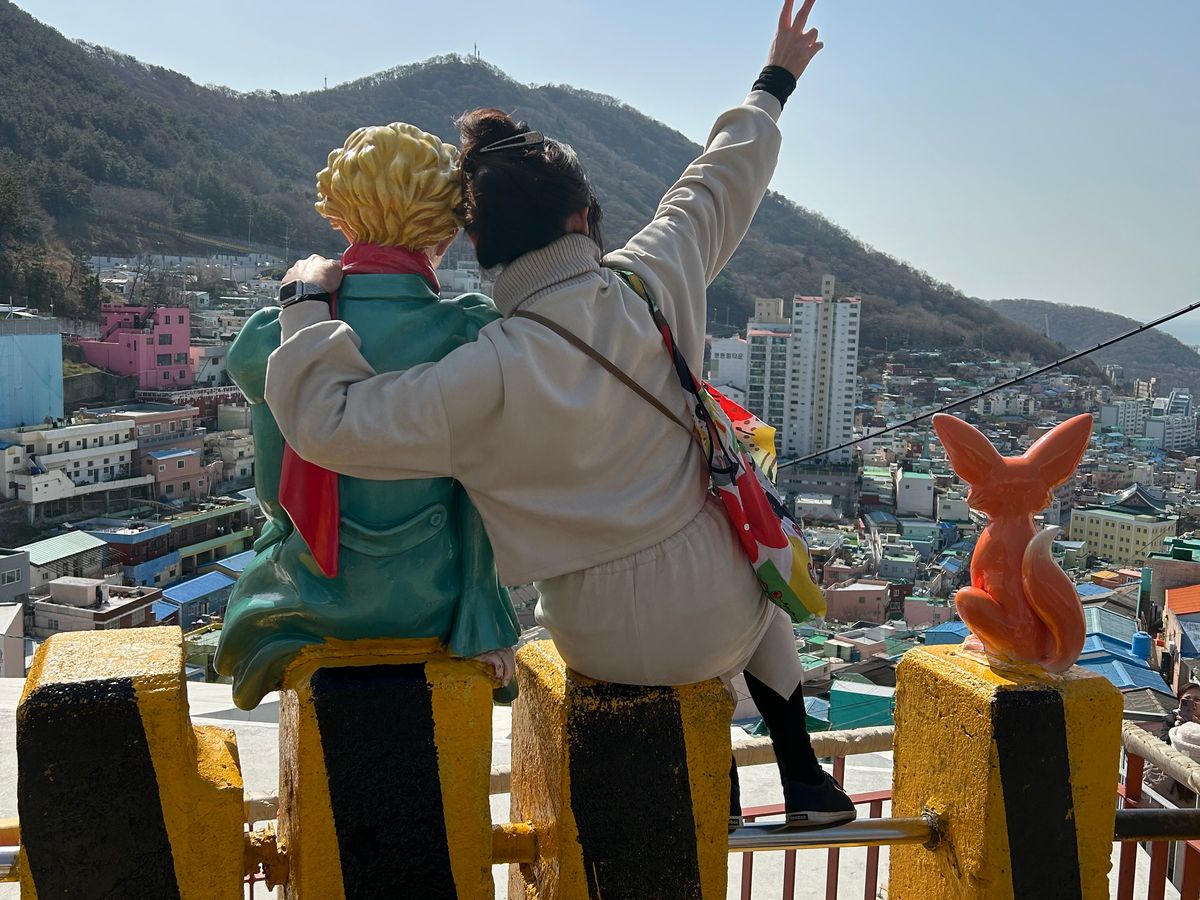 9時前にホテルに迎えに来て頂きタクシーで甘川文化村へ出発しました、。入り口で自由行動と思っていましたが歴史の授業くらいの説明と案内をしていただき感動しました。そのあと釜山タワーまでタクシー移動、写真撮影のお爺さんに写真を撮ってもらってガイドのチェさんに写真をプレゼントして頂きました。釜山タワーの存続の願いとお爺さんのお仕事の協力でここでも感動しました。そしてここから歩いて国際市場に歩いてBIFF広場でガイドのチェさんとお別れでした。チェさんと一緒に写真撮りたかったたなぁ楽しい釜山観光と歴史のお勉強させて頂き素敵な思い出になりました。パワフルなチェさんに元気を頂きました。またお会いしたいです。色んな事を伝えたい想いが伝わってきましたよ