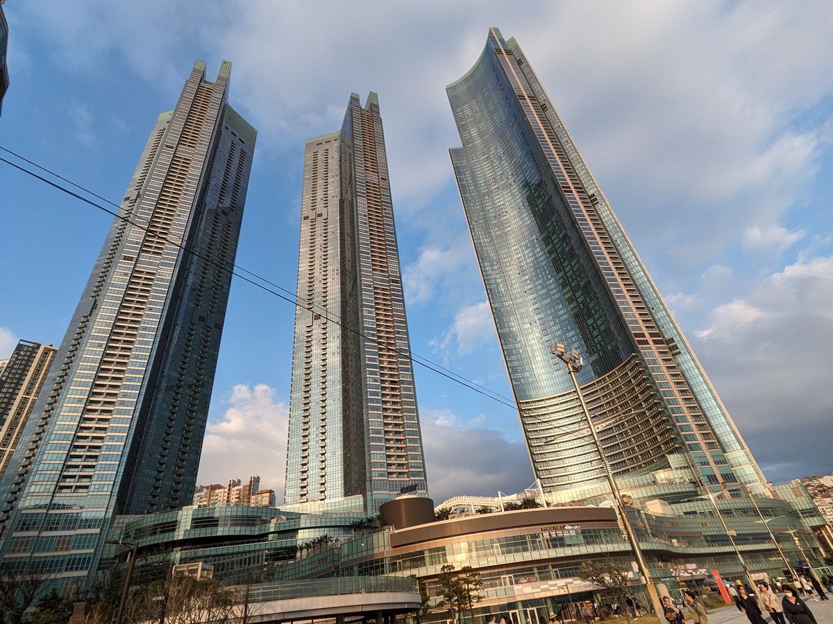 ゴールは、新しい釜山を代表する超高層ビルのおひざもと。