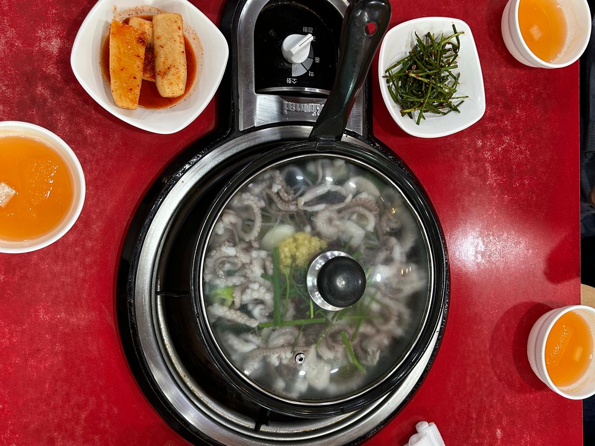 昼食はガイドさんが事前に連絡を入れてくれて、席につくと直ぐに鍋に火が入り熱々のナッチポックムを美味しく食べる事ができました。