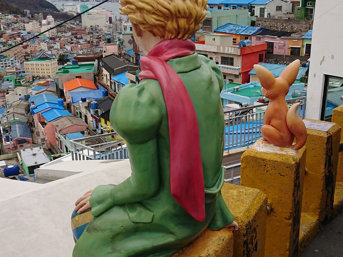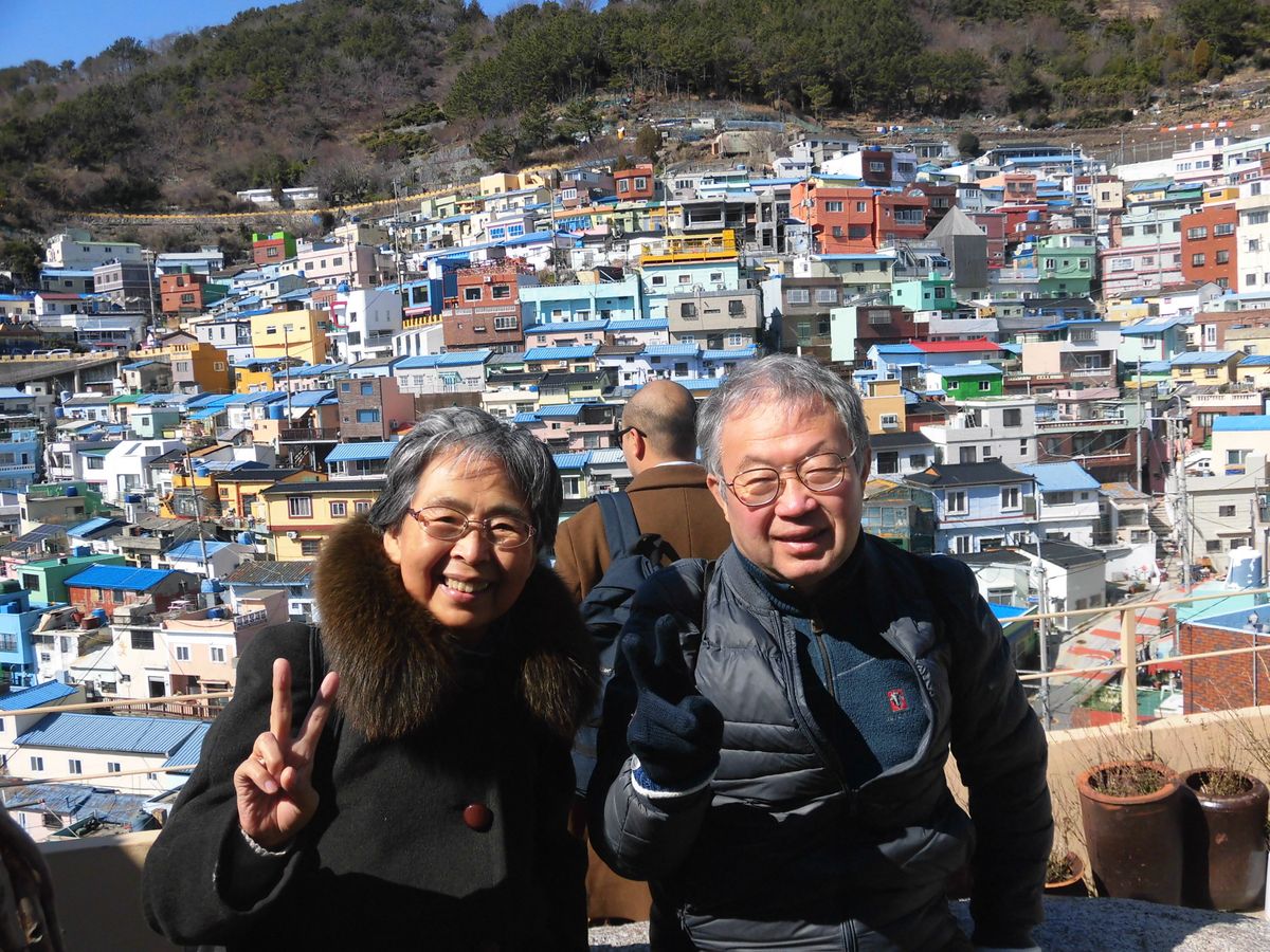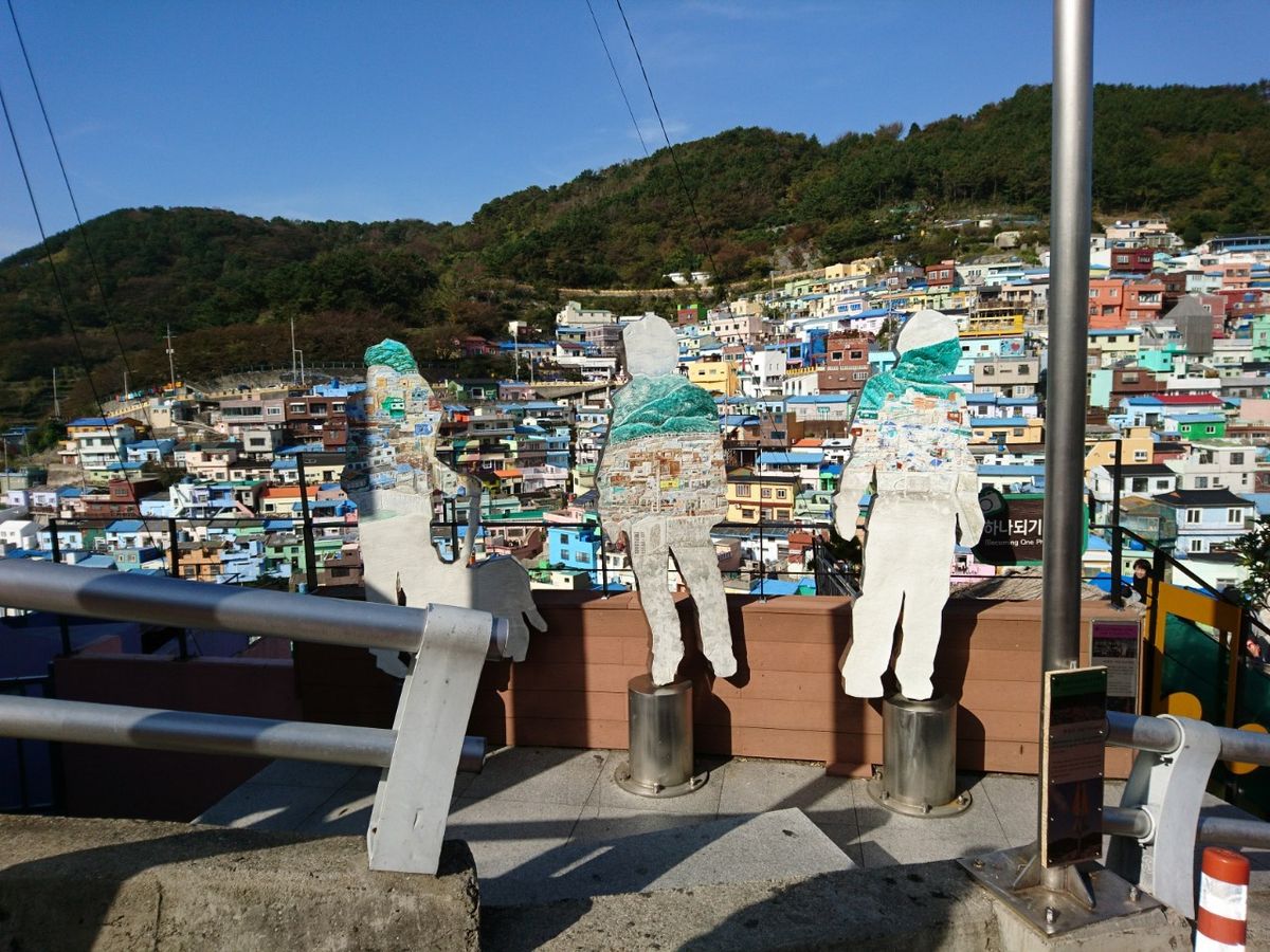 あまり期待していなかったが、甘川文化村のガイドさんが語る悲しい歴史にも耳を傾け、途切れのない路地と急斜面での生活に驚いた。松島海上ケーブルも迫力があり、渡ってからの恐竜や星の王子様も楽しかった。今日も二人だけなのにタクシーで案内して下さり恐縮した。ガイドさんの「もっと近づいて、肩を組んで」にテレながらシャッターを切ってもらった67、68歳の夫婦でした。