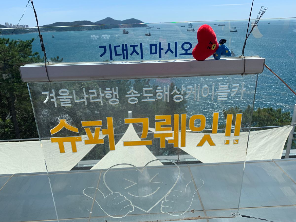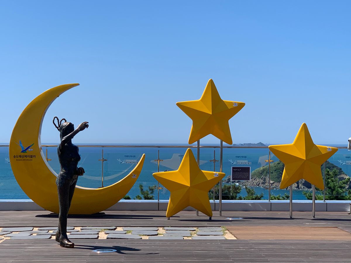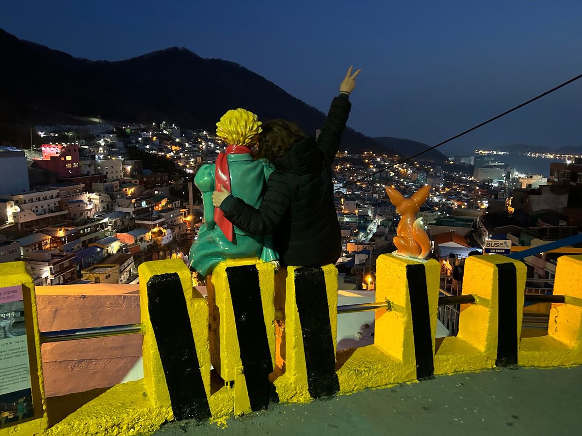あまり期待していなかったが、甘川文化村のガイドさんが語る悲しい歴史にも耳を傾け、途切れのない路地と急斜面での生活に驚いた。松島海上ケーブルも迫力があり、渡ってからの恐竜や星の王子様も楽しかった。今日も二人だけなのにタクシーで案内して下さり恐縮した。ガイドさんの「もっと近づいて、肩を組んで」にテレながらシャッターを切ってもらった67、68歳の夫婦でした。