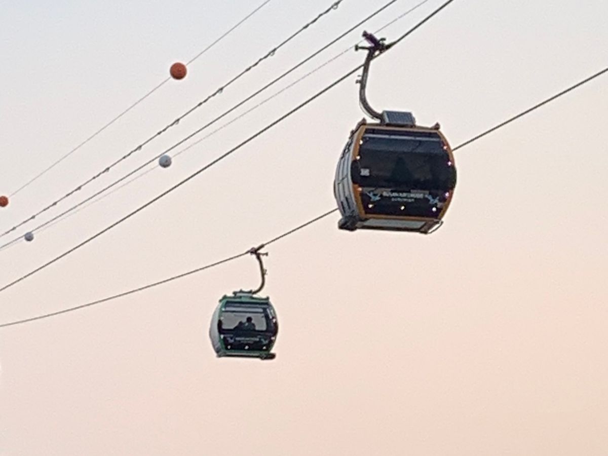 ケーブルカーは、もう最高!山に少しずつ陽が沈んでいく中、色を変えていく海、明かりを灯す船を見ながらの10分間…。