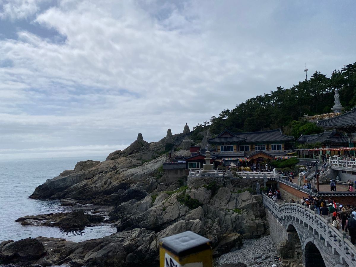 朝ホテルまで迎えに来てもらい2人だけだったのでタクシーでの移動でした。まず龍宮寺へ行き説明を聞きながら見て回りました。その後海雲台ブルーライン、スカイカプセルに乗り海雲台海水浴場まで移動。海雲台市場で解散でした。