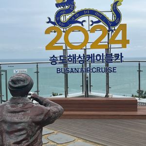 1人参加で料金は倍でしたが、平日の半日ツアーのためか、何と参加者は私だけでした。ガイドさんとタクシーで観光地を巡り、常に写真を撮ってもらい良い思い出ができました。1人だけなので、時間も考慮してくださり、ゆっくりと観光することができました。海上ケーブルカーは高いところが苦手なので少し怖かったですが、それ以上に景色が綺麗でした。天川文化村は本当にアートな町で、見ているだけでも楽しくなりました。韓服を着ている観光客もいて、町に馴染んで素敵でした。半日だと時間が足りないぐらいなので、次はゆっくり回れたらと思います。釜山は建物が高く、海も近くて、波の音や塩の香りに癒され、すごく気に入りました。天気が良いと地元の対馬が見えるそうなので、いつか釜山から対馬を見てみたいです。